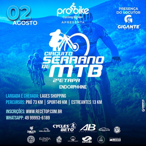 1º de agosto de 2026, na loja PROBIKE, das 9h às 12h / dia da prova, das 7h às 7h45, no Lages Shopping |